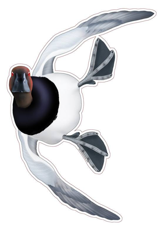 Canvasback, Aythya valisineria: AKA Can. The king of ducks. This unique diving duck with a long sloping bill is named after it's favorite food Valisineria, wild celery. The carb-loaded tubers from this plant are what gives cans their incredibly good flavor, which led to their demise back in the market hunting days. Fortunately populations have recovered to the point that we can still enjoy hunting these majestic birds on big water like Lake St. Clair and Chesapeake Bay.