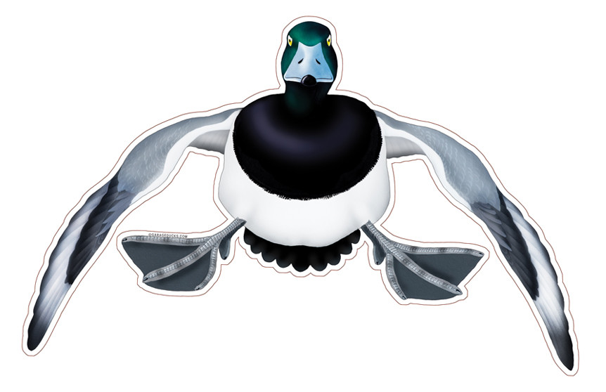 Garage Duck decals half of the size of PVC and Original Wood Garage Ducks. They are printed on 4-mil PVC media featuring RapidAire® advanced air release technology for easier application. Each decal has an 1/8-inch white border so they can be applied to any color of surface (this border is seen in the images of the product). They are finished with a permanent luster overlaminate to help protect it from scuffs and scratches. The decals have a life span of up to 8 years depending on exposure to the elements. The decals are easy to remove by heating with a heat gun.
